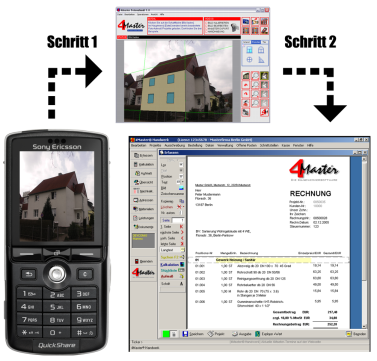 Mit dem 4Master Zusatzmodul haben Sie die Möglichkeit, ein Fotoaufmaß zu erstellen. Sie laden das Bild, das Sie mit Ihrem Handy gemacht haben, auf den Computer. In der Software nehmen Sie mit wenigen Mausklicks einige Einstellungen vor, um auch perspektivische Fotos mit Fluchten verarbeiten zu können und geben ein Referenzmaß für Höhe und Breite an. Genormte Fenster sind z.B. dafür geeignet, ansonsten messen Sie einfach ein Element auf Ihrem Objekt aus. Die Software gibt Ihnen die Möglichkeit diverse Fensterformen und Türen einzuzeichnen, die ermittelten Werte können Sie dazu nutzen, um mit der Software 4Master HANDWERK ein Aufmaß zu erstellen, auf dessen Basis Sie Ihr Angebot kalkulieren.