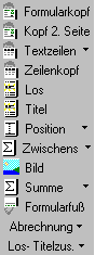 Nach Anwahl zur Platzierung auf dem Formular werden diese Bänder-Button angeboten. Die Funktionalitäten werden durch die Bänder darstellen. Die Verknüpfungen mit Datenbanken werden in einem späteren Kapitel erklärt.