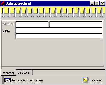 Im Fenster "Jahreswechsel" können Sie zwischen Material und Debitoren wechseln. Durch "Jahreswechsel starten" in der jeweiligen Ansicht wird der Jahreswechsel durchgeführt.