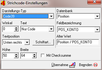 •Die Artikel-/Leistungsnummern je Angebotsposition können nun als Barcode ausgegeben werden. Verwenden Sie dazu im Positionsband des Formulars folgendes Strichcodefeld: