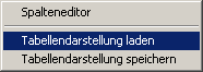 Um eine Veränderung zu speichern, verwenden Sie "Tabellendarstellung laden". Später kann eine gespeicherte Tabellenansicht dann wieder geladen werden.