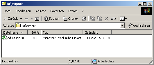 •Wählen Sie im Windows-Dateiexplorer (Arbeitsplatz) das Laufwerk / Verzeichnis aus, in welches Sie die Excel-Datei zuvor exportiert haben, hier d:\export.