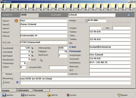 Adressverwaltung (Kunden, Lieferanten, Personal)