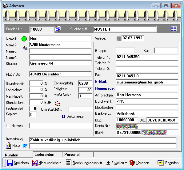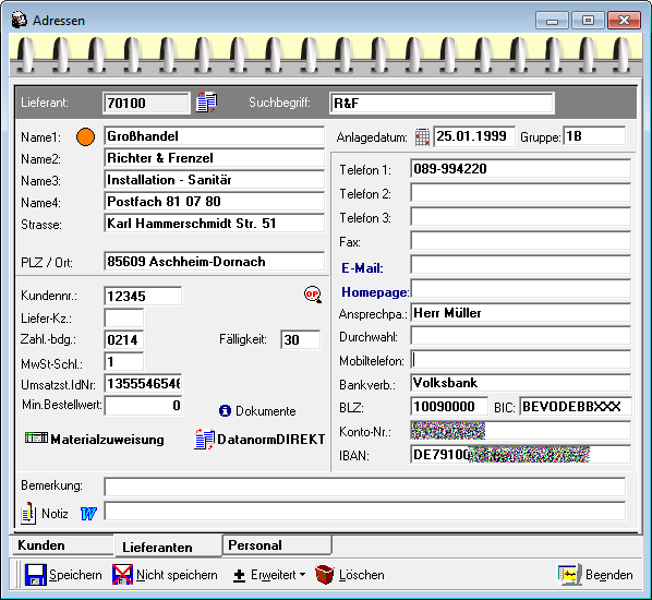 In der Adressverwaltung werden die Kunden-, Lieferanten- und Personal-Adressen verwaltet.