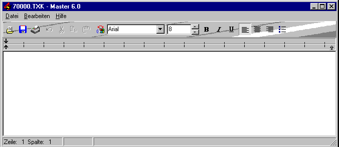 Bei Anwahl Notiz öffnet sich ein Fenster für die Eingabe der Kundennotiz, siehe vorherige Abbildung. Sie können hier kundenbezogene Notizen und Informationen eingeben. Dabei stehen Ihnen unter anderem die Funktionen Speichern, Drucken, Ausschneiden, Kopieren, Schriftart und Größe, Fett, Kursiv und Unterstrichen sowie Zentrierungsmöglichkeiten zur Verfügung. Wichtig ist auch ,links von der Schriftart Arial, die DOS-Windowskonvertierung für die Kunden-Zusatztexte aus DOS-Programmen.