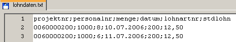 •Bei der Verbindung von "KONSTANTE" mit "Zeitgebucht" fragt das Programm nach einer Konstanten. Tragen Sie hier "2" ein, damit der Buchung die Kennung "mit Zeit" mitgegeben wird. •Können Daten wegen fehlerhafter Angaben nicht übernommen werden, wird das vom Programm protokolliert. Beachten Sie, dass es trotz Überprüfung der Daten durch das Programm zum Einlesen fehlerhafter Datensätze kommen kann. Es liegt in Ihrer Verantwortung dafür zu sorgen, dass nur korrekte Daten eingelesen werden. •Wird auf die Zuweisung des Stundenlohns verzichtet, so versucht das Programm, den Wert anhand der Personalnummer aus den Stammdaten zu ermitteln. •Ist zusätzlich zum Personal eine Lohnart vorgegeben, ist der in der Lohnart angegebene Stundenlohn maßgebend. Dies funktioniert wiederum nur, wenn kein Stundenlohn importiert wird.