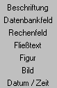 Nach Anwahl zur Platzierung auf dem Formular werden diese Bänder-Button angeboten. Die Funktionalitäten werden durch die Bänder darstellen. Die Verknüpfungen mit Datenbanken werden in einem späteren Kapitel erklärt.