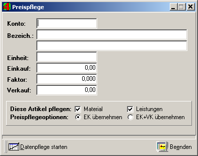 Beachten Sie bitte vorm Starten der Preispflege, dass im Netzwerk niemand auf Wartungsdaten zugreift. |